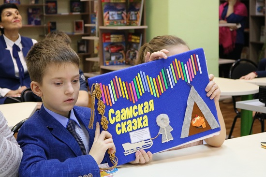 В качестве иллюстраций сказок и легенд гимназисты выбрали детскую рукописную книгу «Сполохи», выполненную Центром детского и юношеского туризма из г. Мурманска, коллективную работу детского сада из посёлка Молочный «Саамская сказка» и другие книги из фонда Музея детской рукописной книги. Юные читатели заполярной столицы с лёгкостью ответили на все вопросы и задали самарцам свои.