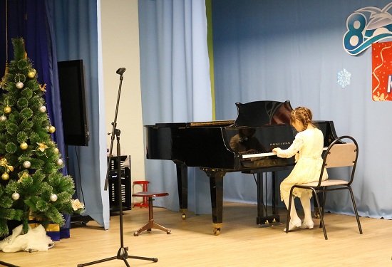 Предновогоднее настроение в зале создавали – юная вокалистка Маркова Екатерина