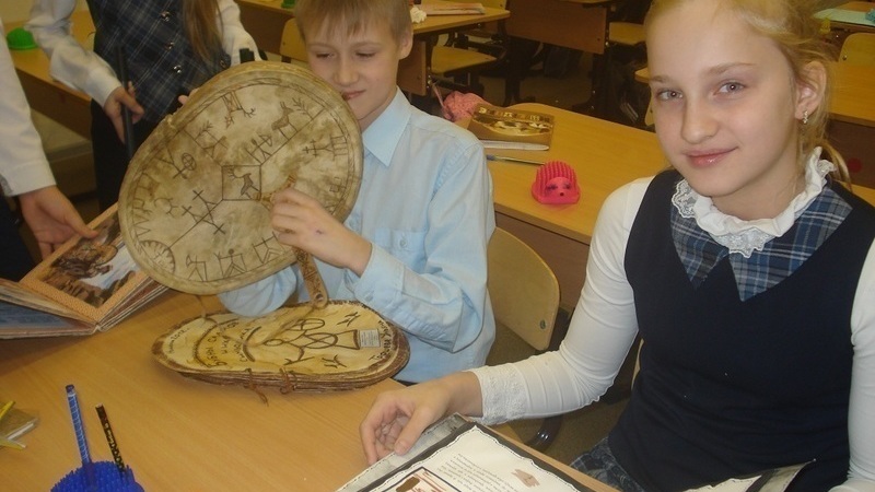 Школьники познакомились с устным народным творчеством коренных жителей Кольского полуострова. В самом начале занятия ребята узнали кто такие саамы, давно ли поселились они в наших Северных краях, какие жилища строили, почему называли себя «оленным народом». Познакомились четвероклассники и с основными промыслами, бытом, историческими и культурными событиями коренного населения.