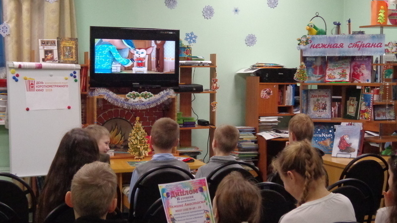 Юные читатели отдела библиотечного обслуживания обучающихся 1-4 классов два дня с удовольствием смотрели отечественные мультики «Барбоскины» – серия «Здравствуй, Дедушка Мороз!», «Дракоша Тоша» – серия «Подкроватные монстры», «Паровозик Тишка» – серия «Подземный город» и другие.
