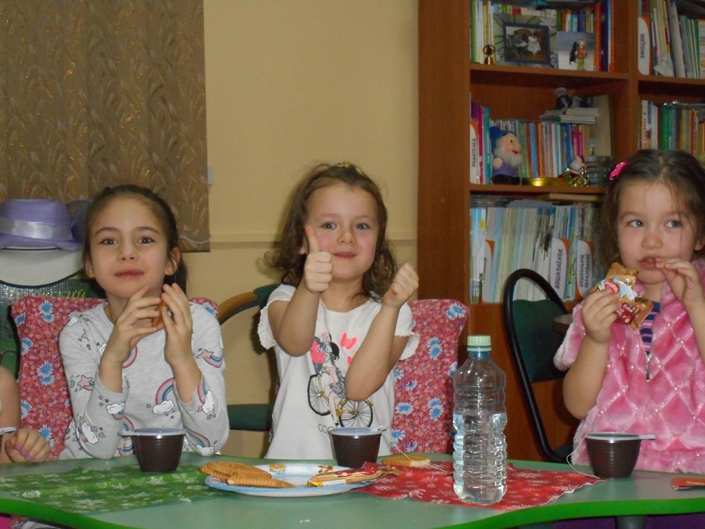 Завершился вечер дружным семейным чаепитием и просмотром мультика.
