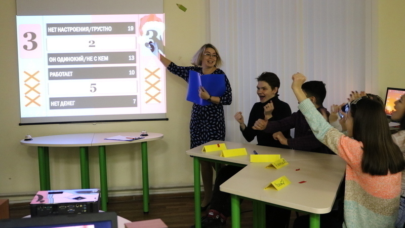 Чтобы погрузить ребят в атмосферу предстоящего новогоднего торжества, сотрудники центра знаний пригласили учащихся 8-9 классов на развлекательно-познавательную игру «Новогодний переполох» в формате телешоу «Сто к одному». Участникам команд «Елочка» и «Звездочка» были предложены непредсказуемые и смешные новогодние вопросы. Игроки не только придумывали интересные ответы на них, но и узнали о необычных традициях празднования Нового года в разных странах, а также хорошо повеселились!