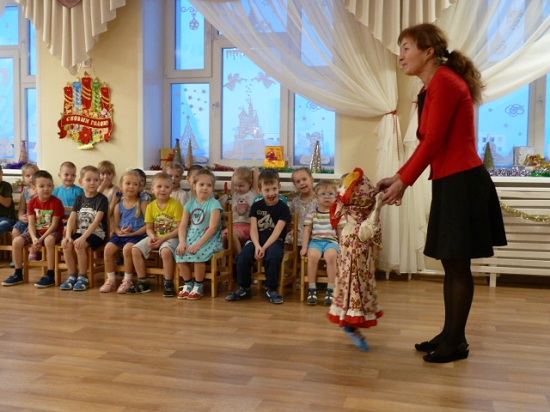 Ребята отправились в новогоднее путешествие по зимнему лесу, где их ждала встреча со сказочными героями: волшебной Вороной, театральной куклой Машей и кукольной Бабой-ягой.