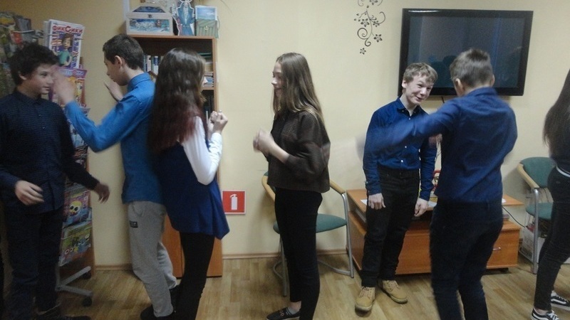 Разделившись на пары, ученики выполнили упражнение «Зеркало и обезьяны», которое подчеркивает роль невербального общения в жизни людей.