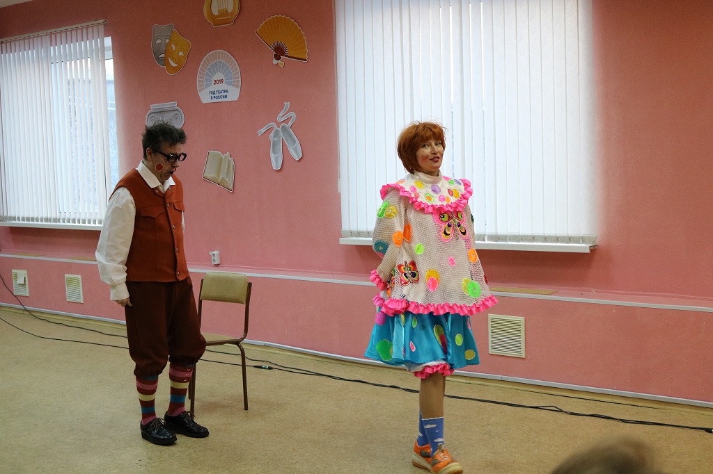 Творческую встречу со зрителями провели актеры Драматического театра Северного флота – помощник главного режиссера Алексей Макаров, Юлия Макарова, Юлия Блохина, Сергей Сорогин, Виталий Громак. Они показали зрителям отрывки из спектаклей: по сказке для детей О. Пройслера «Маленькая Баба-Яга», по пьесе В. Красногорова «Кто-то должен уйти», по произведению А. Аверченко «Женщина и негр», по пьесе В. Ежова «Соловьиная ночь».