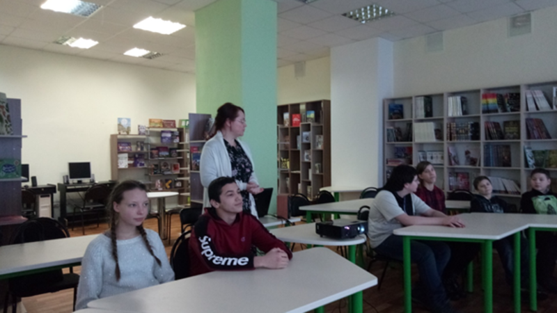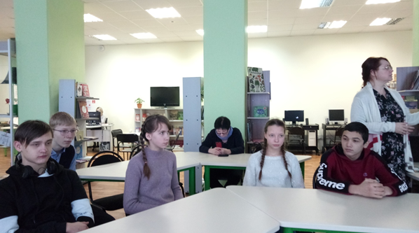 На уроках русского языка, истории и географии, предшествовавших библиотечному занятию, учащиеся 7-х классов КШ №1 обсудили тему языкового многообразия нашей планеты. Наши ученики выяснили, что сейчас на Земле существует более 7000 языков. Дети узнали, что существуют живые и мёртвые языки. Их немало удивил тот факт, что с развитием общества количество живых языков сокращается со средней скоростью 1 язык в две недели!