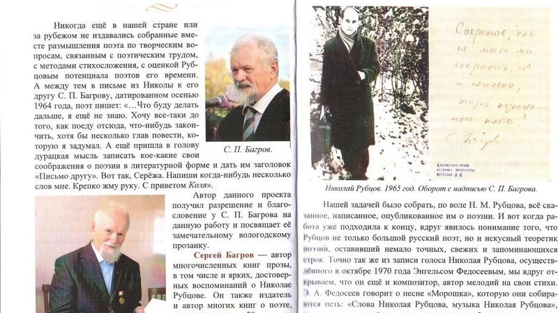 Это «письмо» не только Сергею Багрову, но и друзьям по литературе, в первую очередь вологодским поэтам. Их много, тех, кого можно считать друзьями в поэтическом смысле.