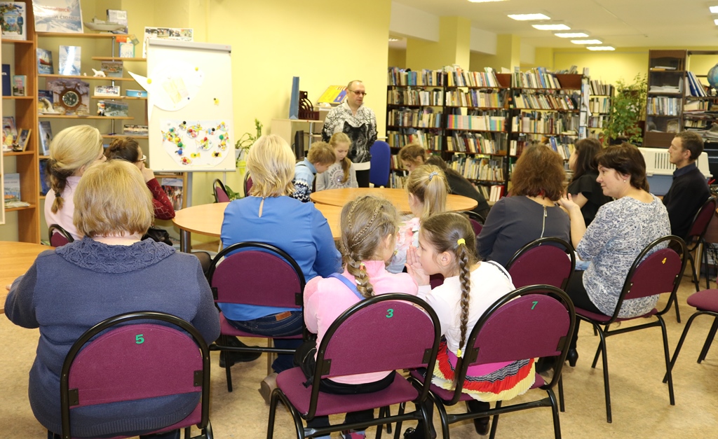 Взрослые читатели и ребята постарше с большим интересом знакомились с полотнами из портретной галереей наших писателей-земляков. Картины написаны заслуженным художником России Анатолием Сергиенко и стали частью музейного комплекса «Мурман литературный».
