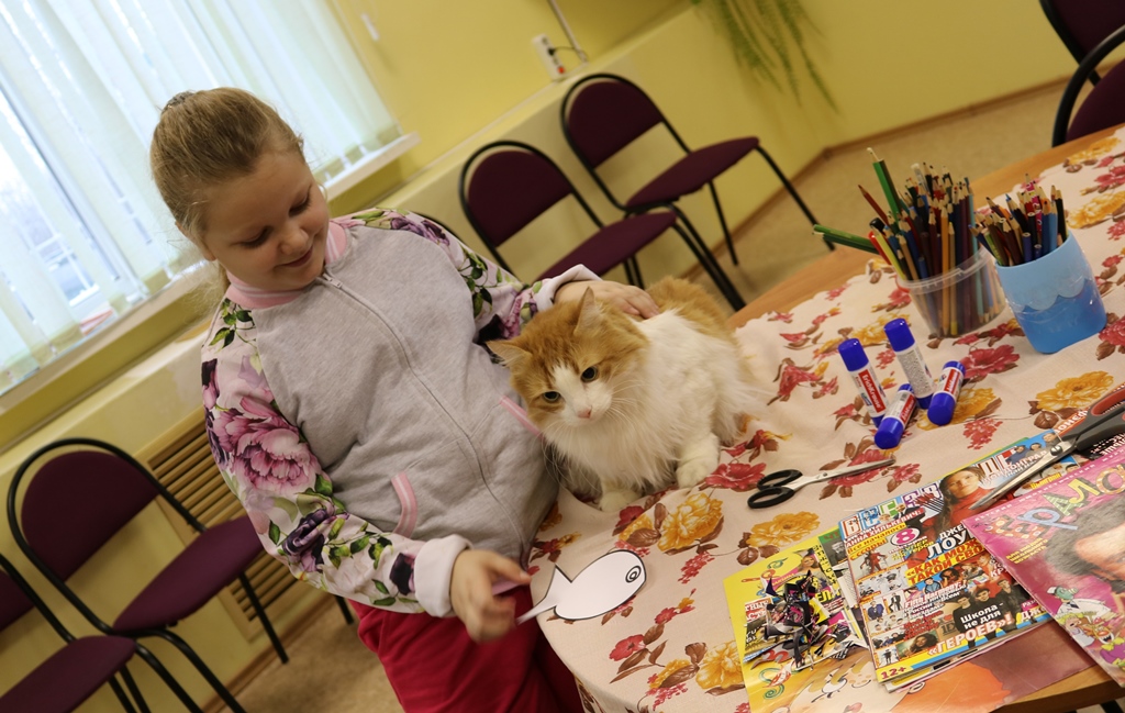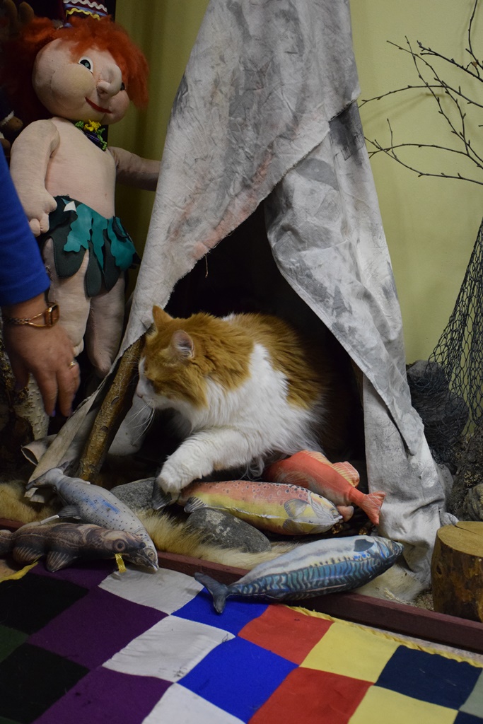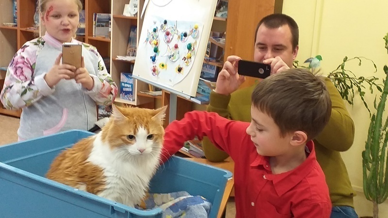 Приятным сюрпризом воскресного мероприятия стали два домашних кота, Дарик и Марик, специально приехавшие на библиотечный праздник в переносном домике. Ребята с удовольствием их разглядывали, гладили, шептали на ушко добрые слова.
