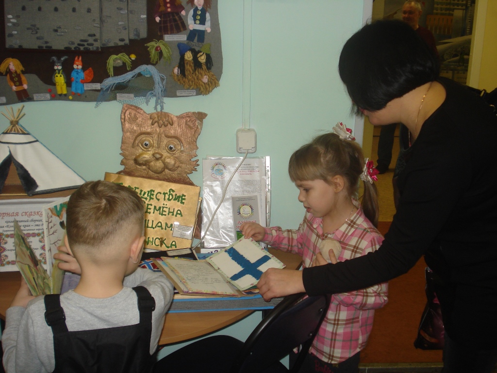 В Музее детской рукописной книги и дети, и взрослые с большим интересом читали и разглядывали книги, удивляясь неожиданным идеям оформления и безграничной фантазии авторов. Ребята рассматривали книжки-игрушки, на страницах которых они смогли встретить персонажей из любимых сказок. Мальчишек привлекли книги военной тематики, а девочки обратили внимание на книги, украшенные вышивкой и яркими рисунками.