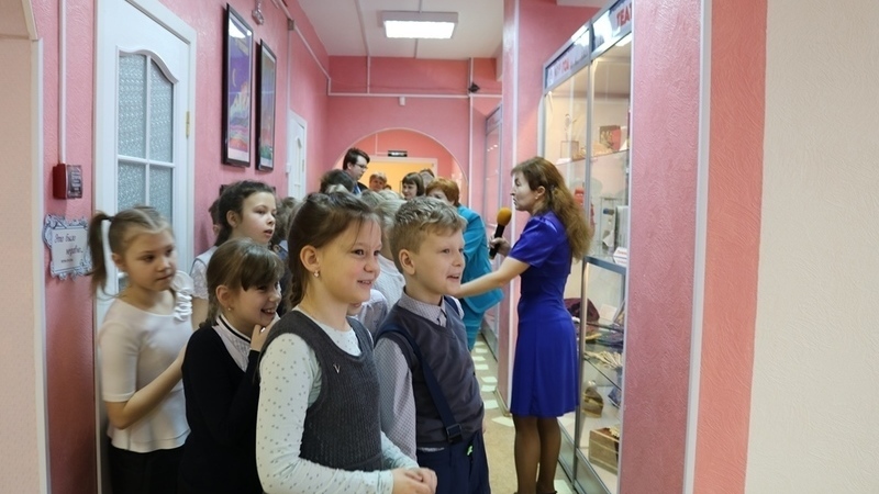 Мероприятие началось в холле, откуда по импровизированной дороге из желтого кирпича все проследовали в отдел искусства и творчества, где познакомились с выставкой, посвященной Году театра. В волшебный мир гостей праздника пригласили творческие коллективы Дома детского творчества им. А. Бредова: прозвучала веселая песня от вокального ансамбля «Созвучие», а яркий танец исполнила солистка студии эстрадного танца «Фантазия».