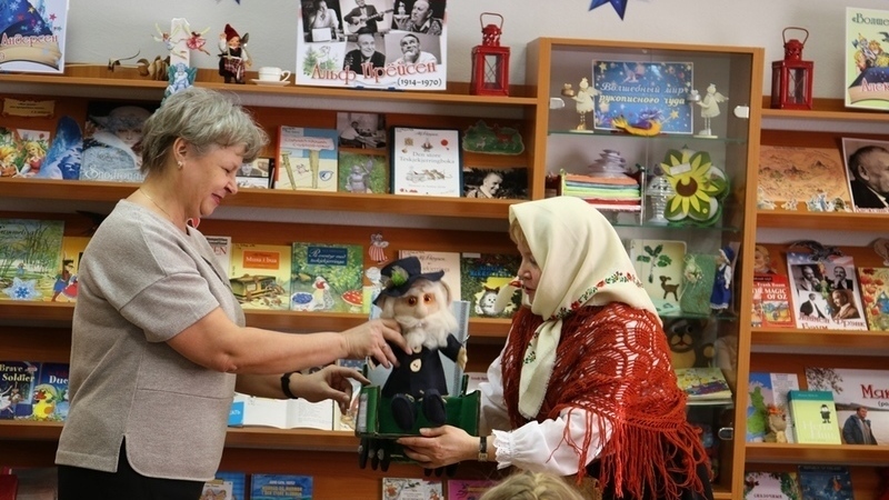 Неожиданное появление Элли, героини сказки А. Волкова «Волшебник Изумрудного города», порадовало зрителей. Она пригласила всех пройти в сектор литературы на иностранных языках, где находилась экспозиция, посвященная зарубежным литературным юбилеям: писателям и произведениям, среди которых Альф Прёйсен, Ханну Мякиля, сказка Г.Х. Андерсена «Снежная королева», «Медвежонок Паддингтон» М. Бонда, «Волшебник Изумрудного города» А. Волкова.
