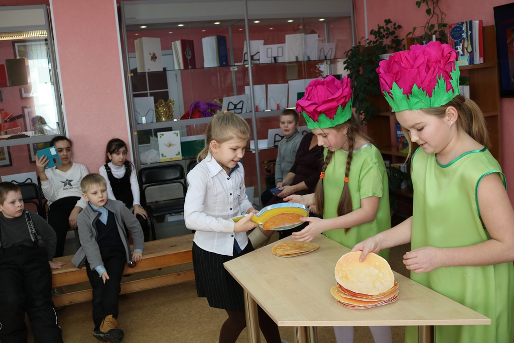 Ребята познакомились с историей Масленицы, её традициями, узнали календарный порядок её празднования по дням недели. Библиотекарю помогали вести праздник обучающиеся 4 «А» класса мурманской школы № 43. Они загадывали загадки, читали стихи, проводили конкурсы и подвижные игры. Все в зале с азартом участвовали в веселых масленичных играх