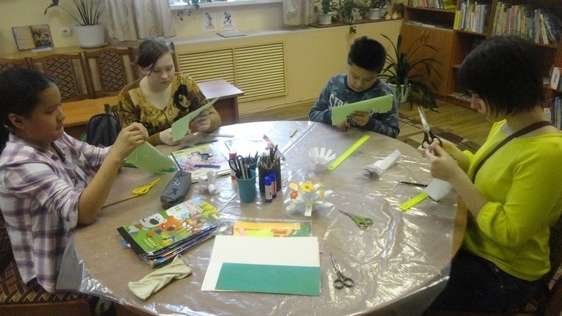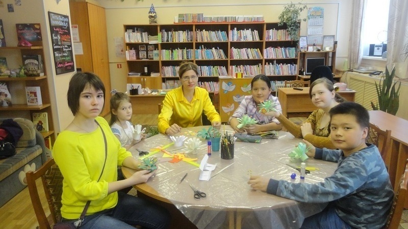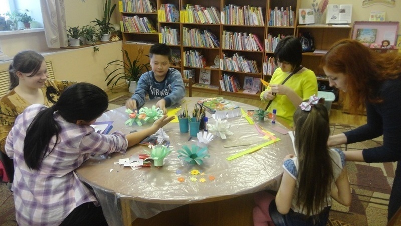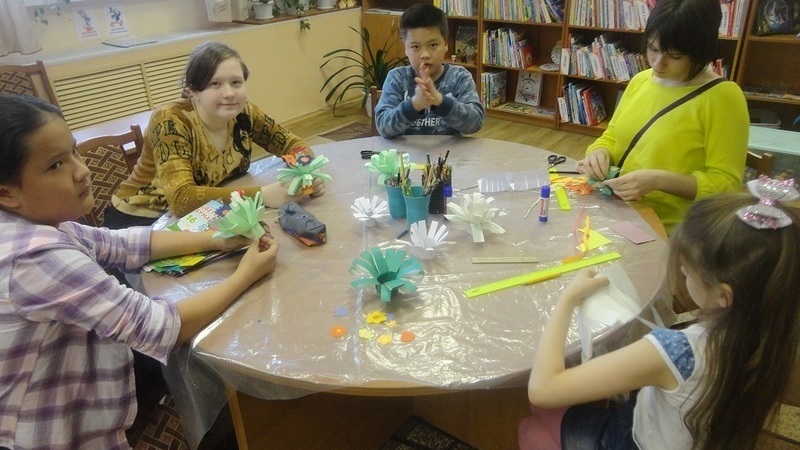 Пришедшие в этот день ребята сделали свой букетик для мамы. Основа букета была у всех одинаковой, а сами цветы получились индивидуальными и неповторимыми, как и сами участники мастерской.