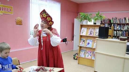 Педагог дополнительного образования Дома детского творчества им. А. Бредова Людмила Немкина провела мастер-класс по изготовлению обрядового масленичного сувенира.