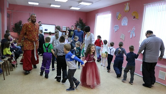 Все участвовали в озорной игровой программе по русским традициям, которую провели представители Школы мужества "Воин51" Владимир Листвин и Артем Собинин.