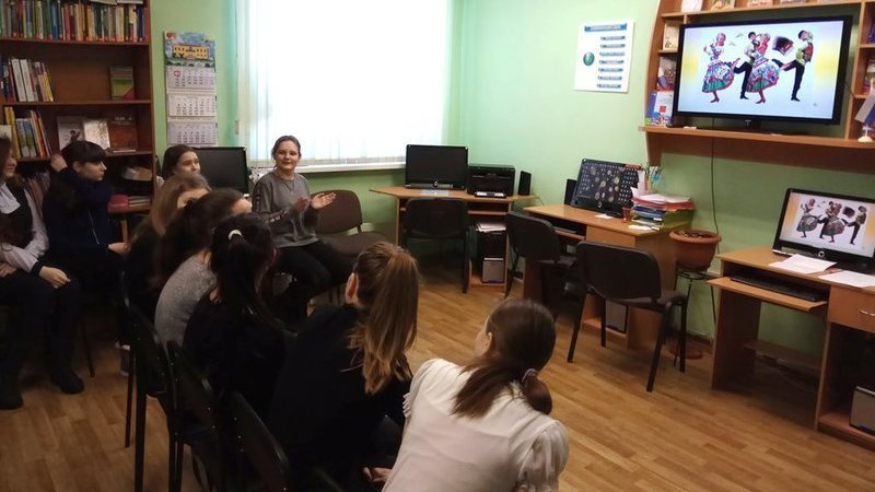 В ходе беседы ребята узнали историю возникновения национальных символов, а также получили информацию о народных промыслах и кухне. Обучающиеся внимательно рассматривали детали народных костюмов, представленных в кадрах презентации. Просмотр видеоклипов с традиционными танцами создал праздничную атмосферу мероприятия.
