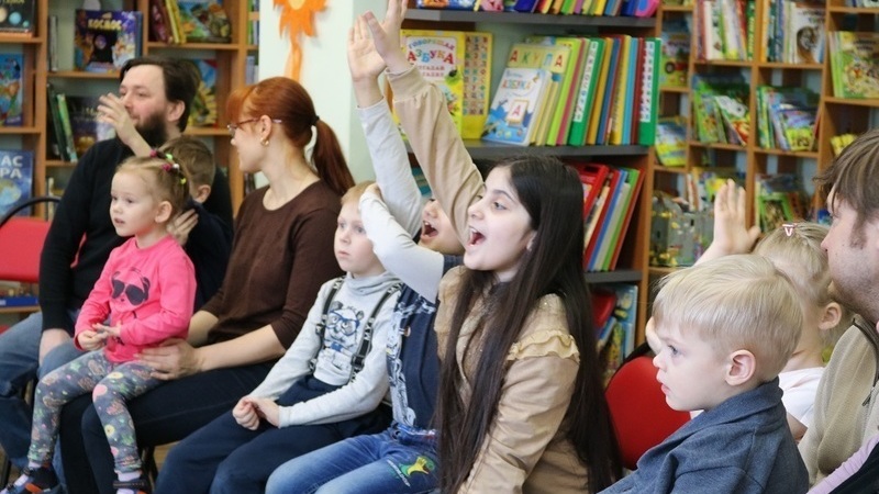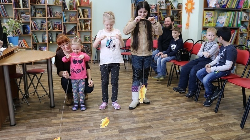 Дети вместе с родителями разгадывали загадки о сказочных героях, читали стихи известных и любимых поэтов, вспоминали книги, в названии которых есть цифры и договаривали длинные имена сказочных героев. Дружно и с удовольствием участвовали в играх и конкурсах: «Книжная путаница», «Доскажи словечко», «Разноцветные колпачки», «Кто быстрей поймает золотую рыбку?». Превращались в книжных героев с книгой «Угадай, кто ты?» и активно участвовали в конфетной эстафете «Как на книжкины именины».