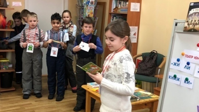 В мастерской им предстояло составить название спектакля для афиши из разных слогов. А потом попробовать себя в роли актёров спектакля «Жили-были книжки». В первом действии участники показывали пантомиму по стихотворению Д. Дмитриева «Встреча». Во втором, ребята читали по ролям сказку Д. Родари «Про мышь, которая ела кошек». А разыгрывая стихотворение «Заболевшие книжки» Галины Дядиной, школьники попробовали себя в роли «живых книжек», придумывая и рассказывая истории о том, что с ними случилось.