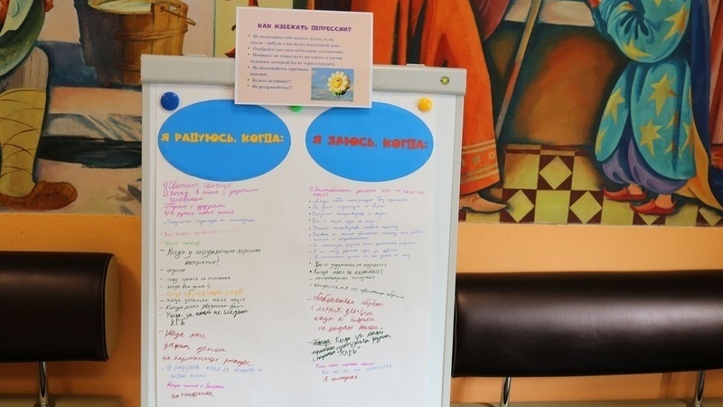 На специальном стенде дети и взрослые размещали разноцветные карточки с рисунками, отображающими, по их мнению, наиболее эффективные методы, помогающие избавиться от уныния: прослушивание музыки, чтение книг, наличие хобби, занятия спортом и другие. Пользователи активно знакомились с материалами выставки по теме мероприятия.