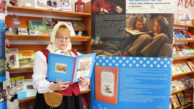 А в этот раз один из плакатов помог читателям встретиться с «самой любимой бабушкой всех норвежских детей» – именно так называют в Норвегии писательницу Анне-Катрине Вестли (1920-2008). Наша библиотечная бабушка прочитала отрывок из книги Анне-Катрине Вестли под названием «Мама, папа, бабушка, 8 детей и грузовик» – вот такое необычное название у книги. Удивительно, как ненавязчиво, мудро, с поистине материнским терпением писательница учит пап и мам быть хорошими родителями! Учит их общаться со своими детьми, понимать их, делать их жизнь, наперекор всем внешним трудностям, радостной и интересной. Мы как-будто слышим голос самой Анне-Катрине Вестли, которая говорит нам: «Смотрите, как хорошо жить, если человек думает не только о себе, если он думает и заботится о всех окружающих. Это совсем не трудно и очень приятно. Вы только попробуйте!»