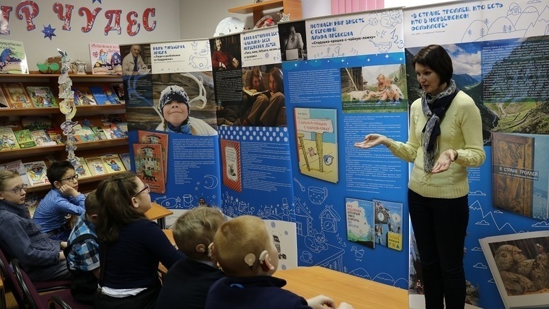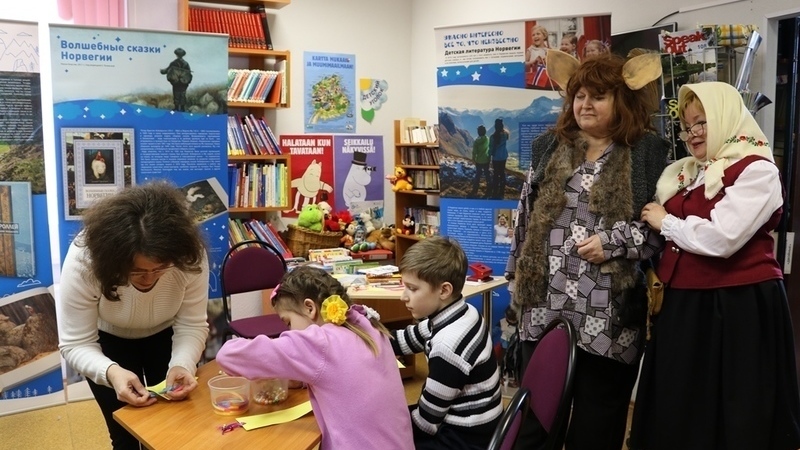 Библиобабушка вместе с троллем, любимым героем норвежских сказок, провели интерактивный обзор тематических плакатов выставки «Ужасно интересно все то, что неизвестно», посвященной детской литературе Норвегии. Библиобабушка прочитала детям отрывок из книги Альфа Прёйсена «Старушка-крошка-с-чайную-ложку», а также познакомила с книгой Анне-Катрине Вестли «Папа, мама, бабушка, 8 детей и грузовик», с книгами Турбьёрна Эгнера «Кариус и бактериус» и «Люди и разбойники из Кардамона».