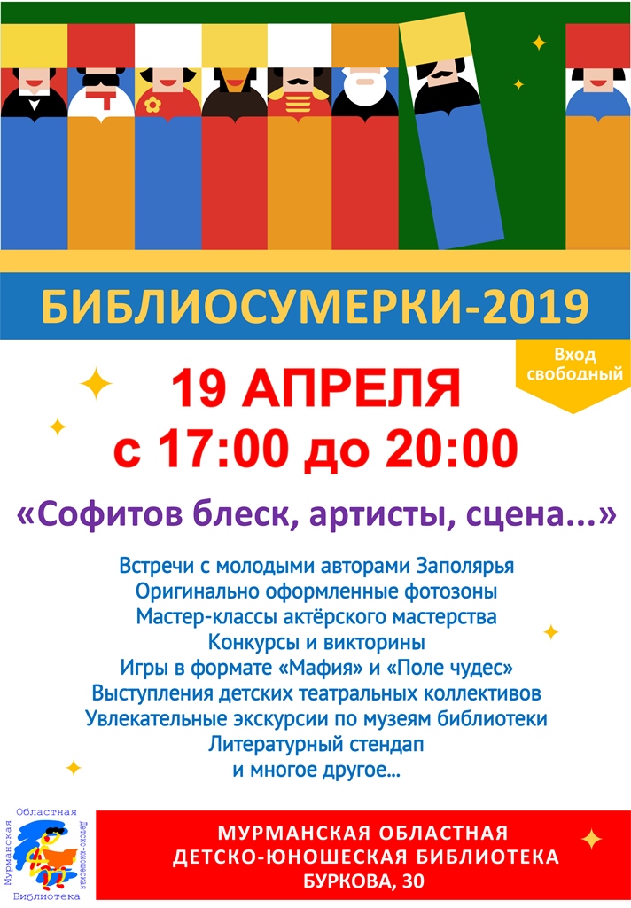 Это мероприятие состоится в рамках Всероссийской акции «Библионочь-2019», официальная тема которой: «Весь мир — театр».