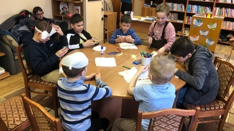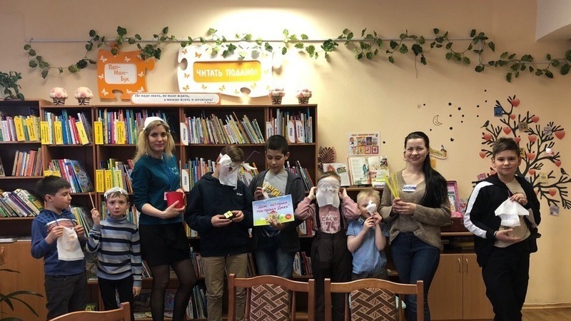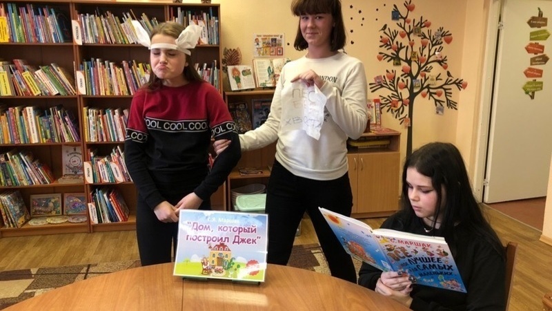 В течение 15 минут, используя тканевые салфетки, фломастеры, резинки и коктейльные соломинки, читатели должны были между собой распределить роли и создать образы героев стихотворения.