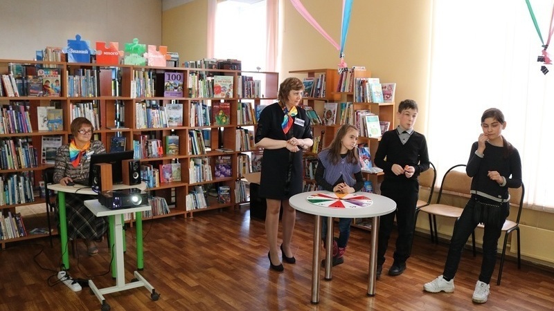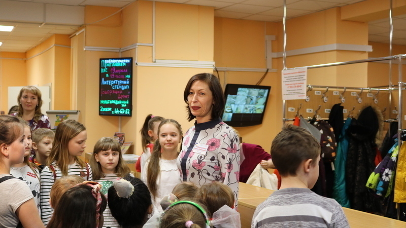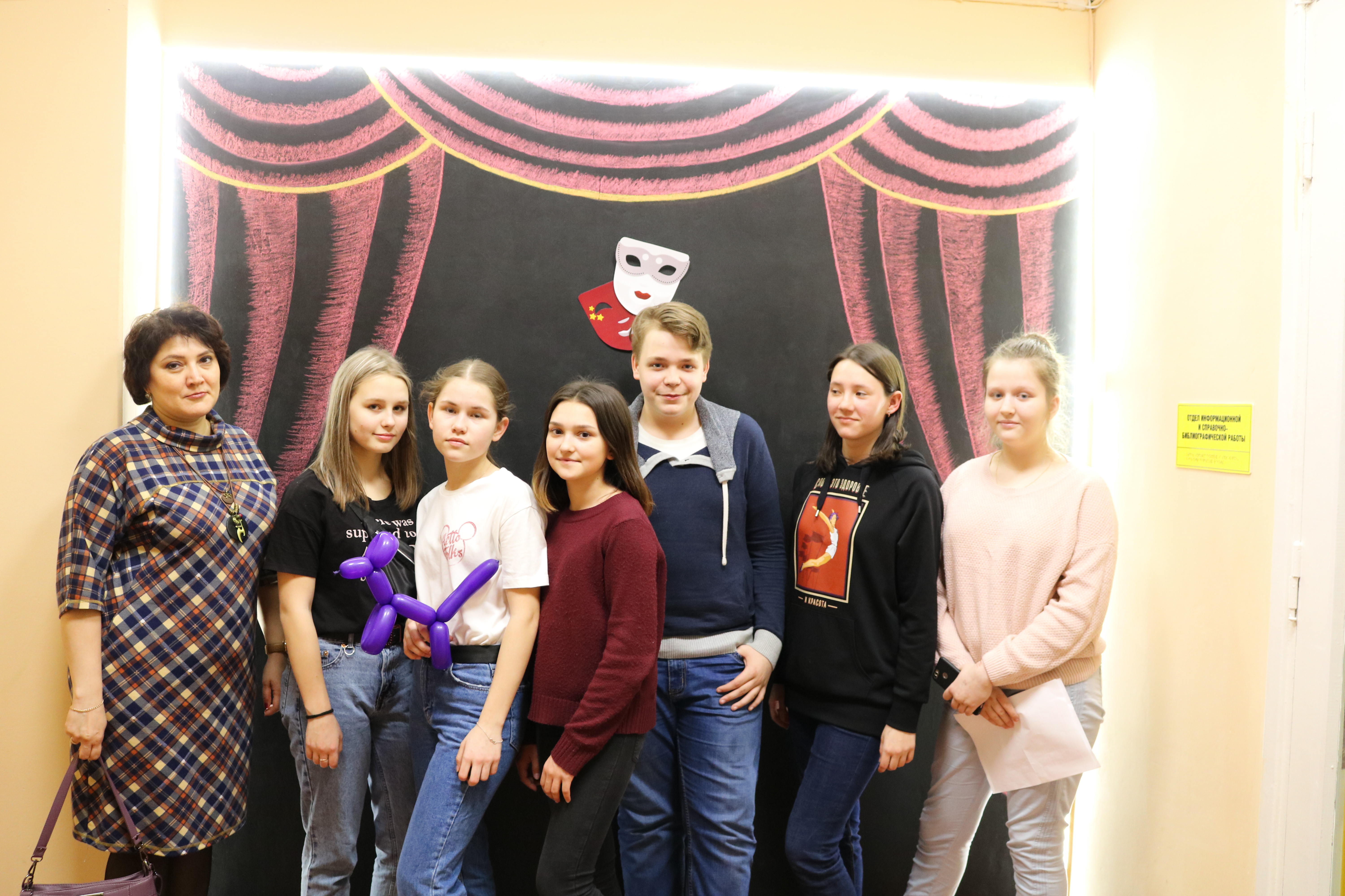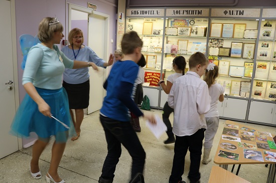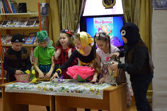 В отделе библиотечного обслуживания обучающихся 1-4 классов состоялась встреча с актрисой Мурманского областного драмтеатра Светланой Лебедевой, которая рассказала маленьким читателям о тайнах актерского мастерства. Калейдоскоп талантов собрал юные дарования из Мурманска и поселка Гаджиево. Они представили на суд зрителей танцы «Умирающий лебедь», «Испанские мотивы», «Дюймовочка» и «Остров сокровищ», а также восточный танец. Коллектив детей из 3-х классов школы №49, под руководством Крыловой М.А. показал сценку по мотивам сказки К. Чуковского «Муха-цокотуха». Для участников была организована «театральная гримерка».