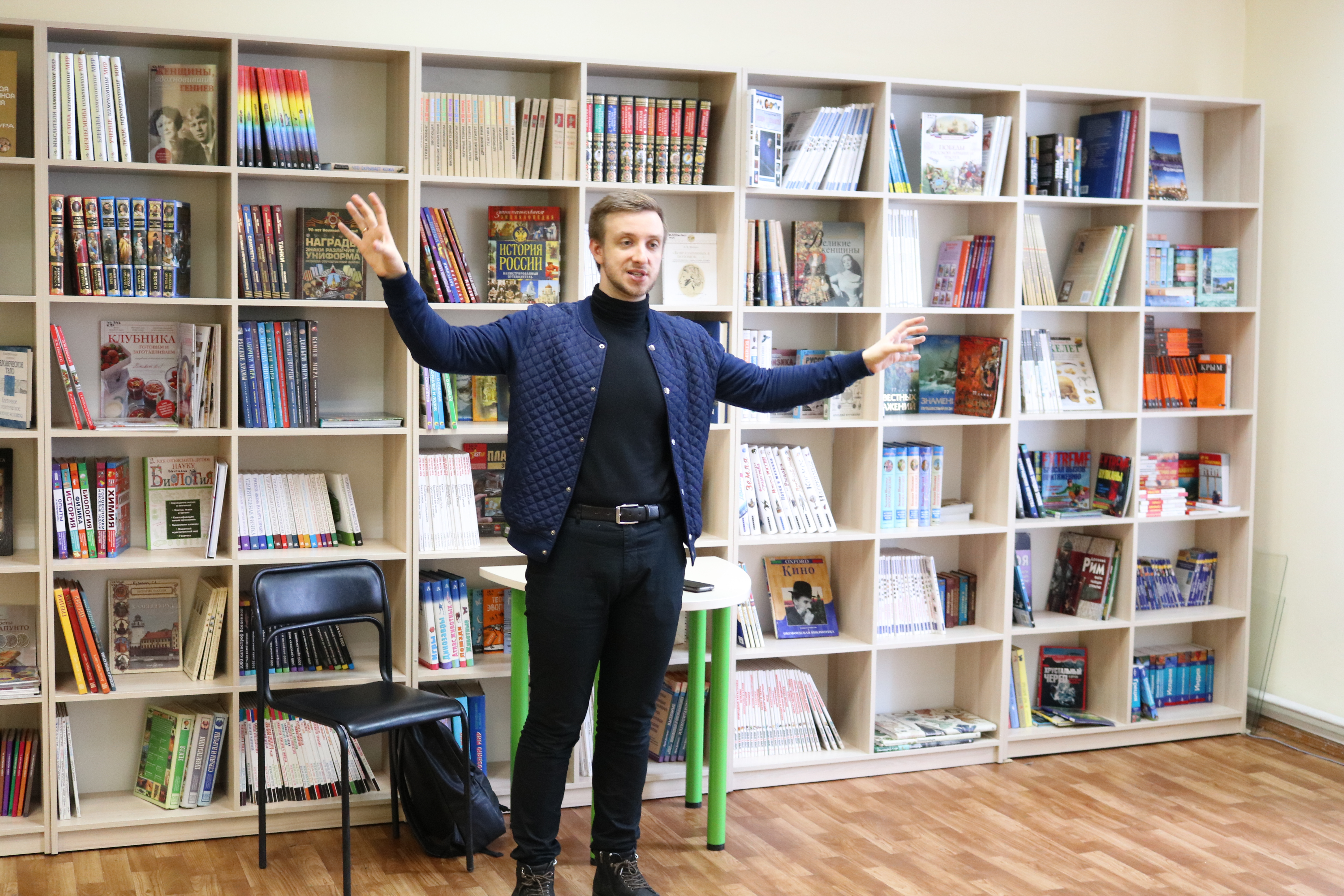 Продолжилась встреча увлекательным мастер-классом от руководителя детской театральной студии «Домино», актера театра Северного флота Александра Титовского.