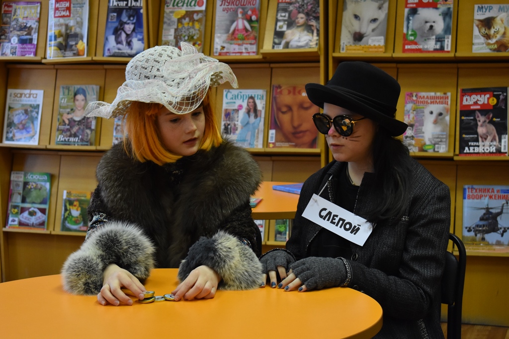 Весело и шумно прошли «Библиосумерки» в отделе электронных ресурсов. Читатели и волонтеры библиотеки стали участниками театрализованного флешмоба. Школьники попробовали себя в новой роли и проявили свои творческие способности. Отдел превратился в настоящую гримерку, где ребята могли почувствовать себя актерами.