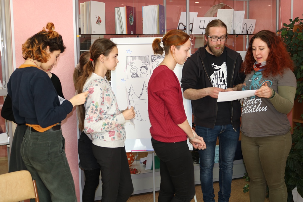 Ребята получили первые навыки и знания о том, как правильно выстроить свою рисованную историю, как расположить героев в кадре, узнали о техниках рисования и как с помощью простого карандаша и фломастера, можно оживить свой рассказ на бумаге.