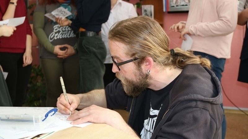Издания художника довольно многообразны, среди них есть комиксы, как для детей, так и для взрослых, а также академической направленности. Мурманск автор посетил впервые.