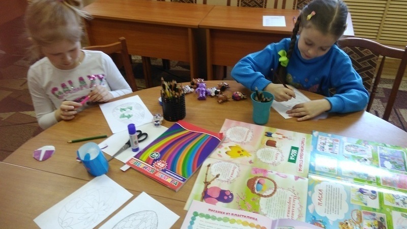 В начале мастерской ребята узнали о самом празднике и том, что является символами праздника – куличи, пасха и крашеные яйца. Библиотекарь рассказал детям о том, что разные народы сохранили древнюю традицию росписи пасхальных яиц: крашенки, писанки, крапанки.