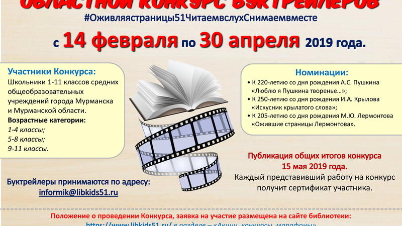 Мурманская областная детско-юношеская библиотека проводит Областной конкурс буктрейлеров #Оживляястраницы51ЧитаемвслухСнимаемвместе