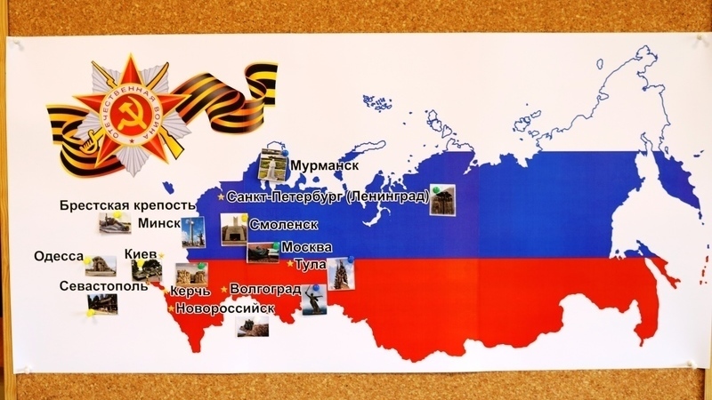 Юные мурманчане проверили полученные знания, составляя карту-плакат. На ней они отметили города-герои, разметили изображения памятных мест и рассказали о них.