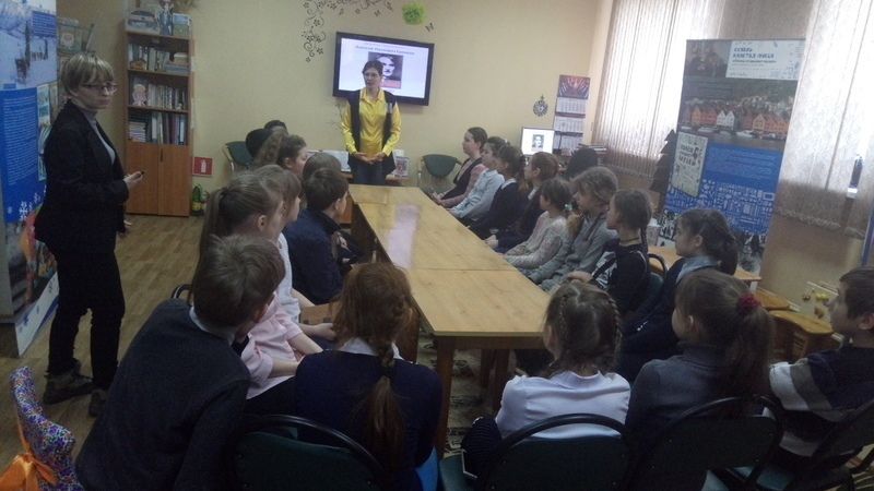 В начале мероприятия библиотекарь познакомила четвероклассников с биографией писателя Леонида Пантелеева, рассказала, что настоящее его имя Алексей Иванович Еремеев. Учащиеся узнали о его жизни и творчестве в годы войны.
