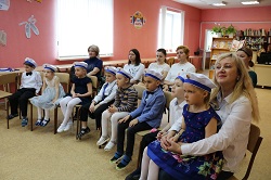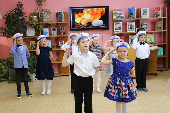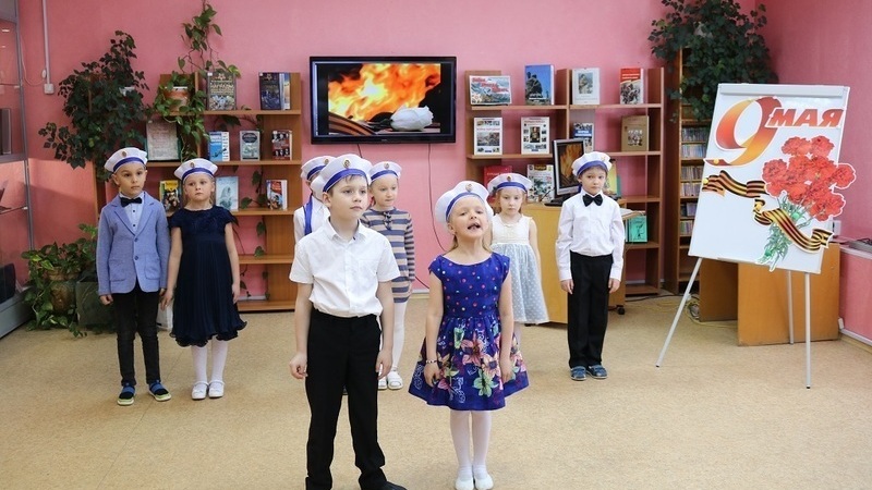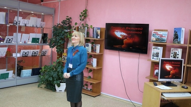 Библиотекарь отдела познакомила участников мероприятия с историей создания песен «Священная война», «Прощание», «Темная ночь», «Катюша», «Соловьи», «Землянка», «Последний бой». Они не только их слушали в записи, но и с удовольствием подпевали. Особенно понравился ребятам видеоролик с современной песней «О той весне», которую исполняют дети.