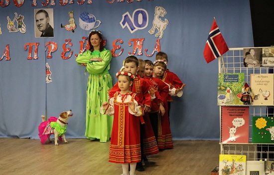 Гостей праздника встретили знаменитая героиня Альфа Прёйсена Старушка-крошка-с-чайную-ложку и норвежский тролль.