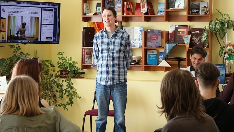 Молодой автор рассказал студентам и школьникам старших классов о своем родном городе Тюмени. В Мурманске он живет всего 3 года, работает методистом в Центральной детской библиотеке города.