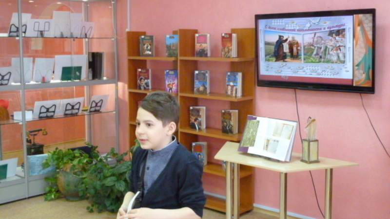 Особое внимание детей привлекли репродукции книг на старославянском языке из издания «Русские монастыри».