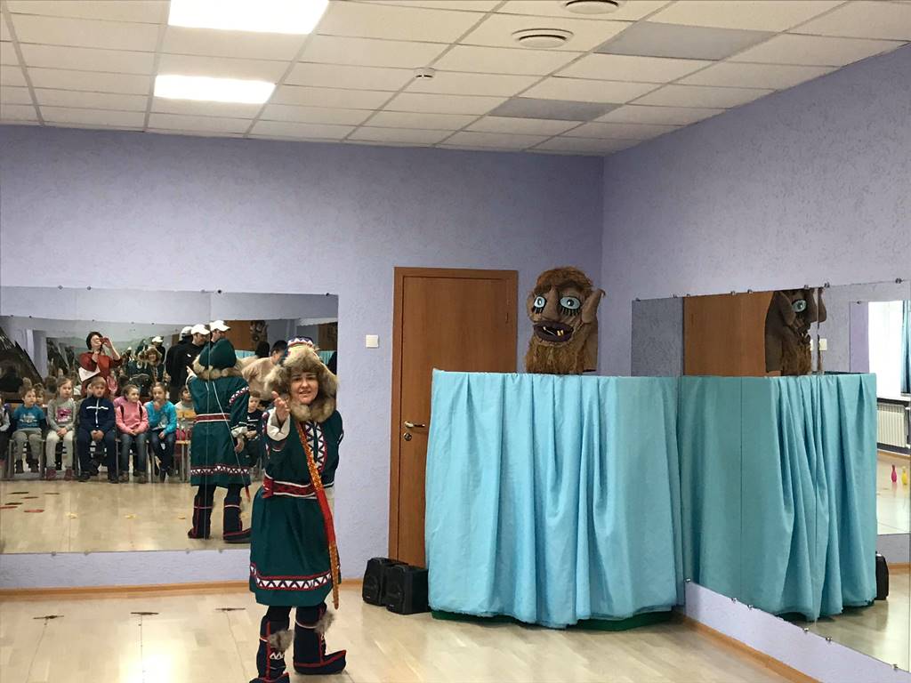 В заключение праздника посетители мероприятия с удовольствием приняли участие в театрализованном представлении «Сампо-лопарёнок» по мотивам сказки С. Топелиуса, которое приготовили и показали сотрудники отдела искусства и творчества.