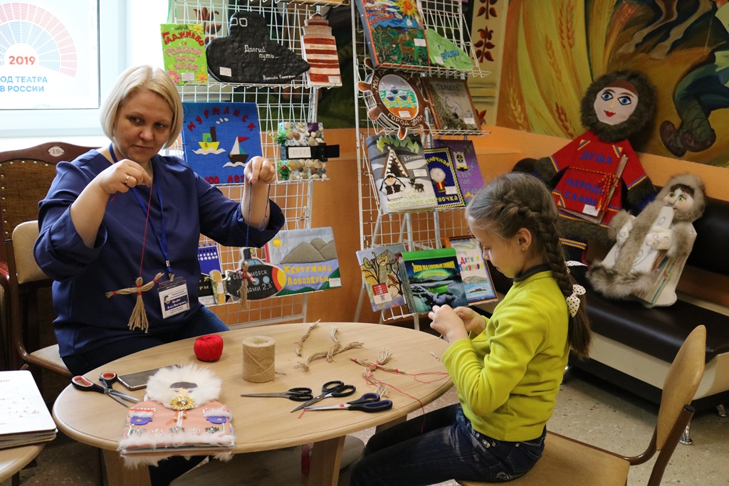 Для всех посетителей библиотеки работала творческая мастерская, на которой они мастерили на выбор поморскую куклу-оберег, куклу-закрутку или северного оленя.