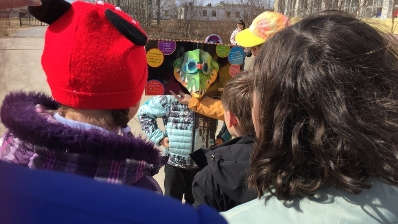 Учащиеся школы вместе с ведущей встречали рассветы и закаты, собирали на необитаемом острове волшебные снежные фрукты, танцевали заводной танец «Лимбо», угадывали животных, поселившихся под обложкой книги «Угадай, кто я!», складывали из кубиков сказочные иллюстрации.
