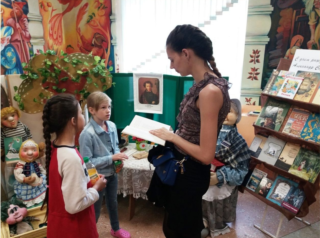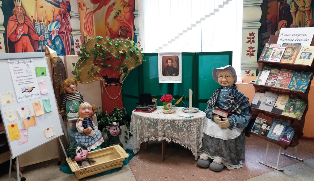 Яркая инсталляция с литературными героями с порога помогала гостям библиотеки погрузиться в мир пушкинских сказок, все желающие могли поздравить поэта с юбилеем, а самый главный подарок автору – это чтение его произведений.