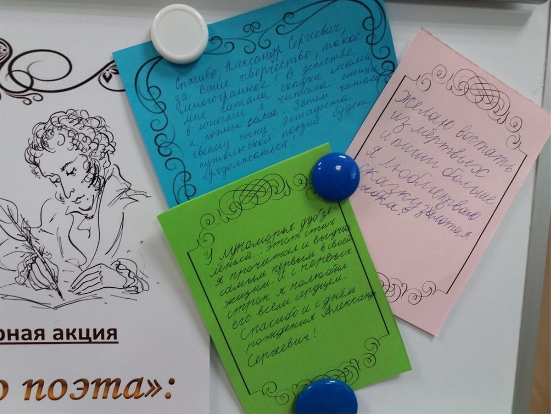 В течение дня читатели все вместе создали юбилейную поздравительную открытку для именинника – это слова благодарности, признательности и любви к таланту великого русского поэта.