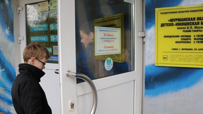 Наклейка с мишкой "Здесь рады детям" на входной двери указывает на дружелюбное место и определяет перечень услуг, который может предоставить организация.