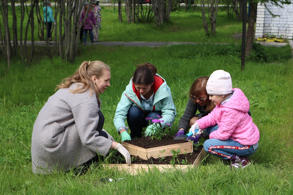 Для кого-то это был первый опыт посадки живых растений. Ребята из Школы добровольческих инициатив #НАШЕдело посадили нежную сирень. Малыши активно украшали клумбы под руководством библиотекарей.