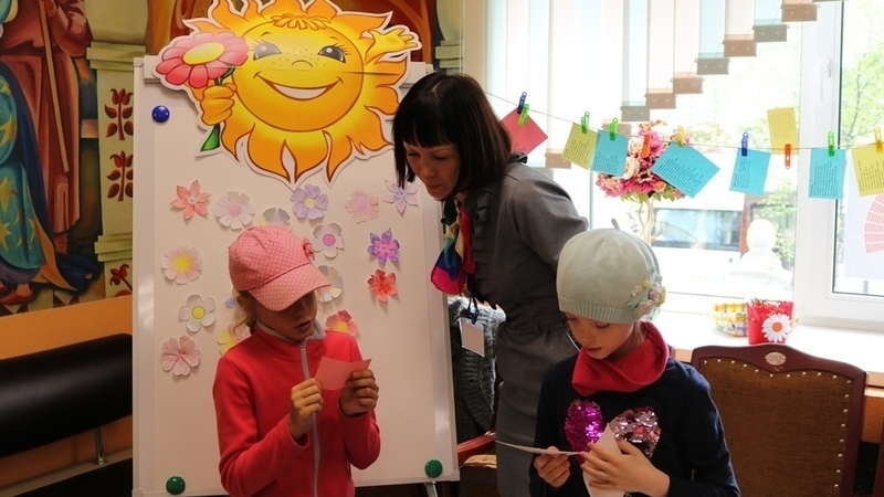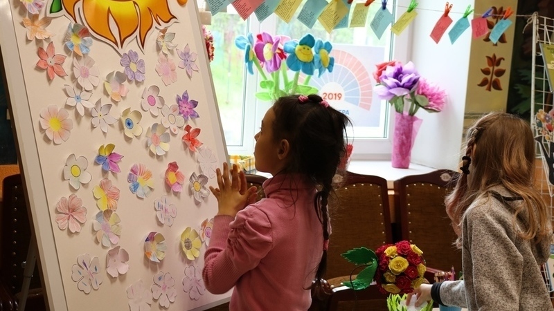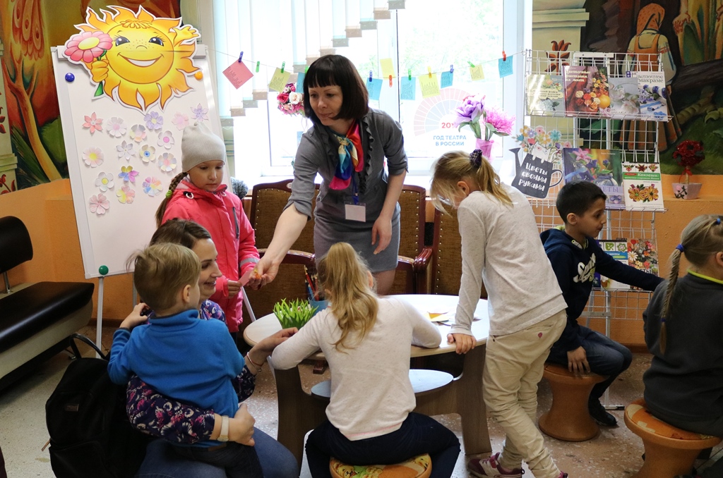 А в холле библиотеки наши читатели смогли принять участие в литературном чтении стихов о цветах, отгадать «цветочные» загадки, нарисовать свой собственный необычный цветок и подарить его Солнышку.