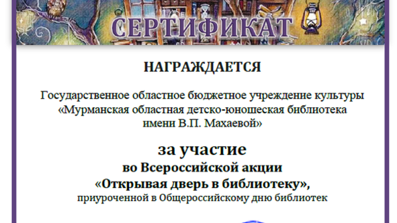 Если вы ещё не знакомы с нашей библиотекой и посещали только сайт, приходите и откройте дверь в Мурманскую областную детско-юношескую библиотеку имени В.П. Махаевой. Вас встретят приветливые библиотекари, ждёт тёплая атмосфера, уютные залы, уникальные музеи, книжные выставки, интересные развлекательные и познавательные мероприятия, различные издания на любой вкус и многое другое. Здесь можно увлекательно провести досуг и получить помощь в учёбе и работе.
